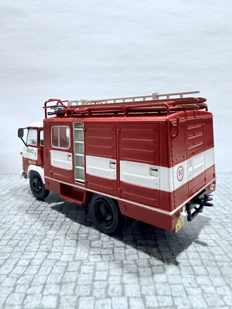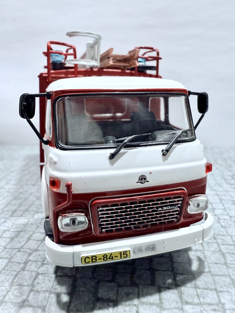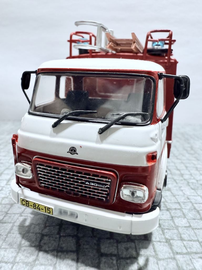 W 1968 roku, kiedy rozpoczęto produkcję samochodów ciężarowych serii A 15 / A 30, firma nosiła nazwę Avia, Prague-Letňany National Enterprise, Jiří Dimitrov Plant. W skład firmy wchodziły również zakłady branżowe. Zakład w Heršpicach koncentrował się na zabudowach skrzyniowych, a zakład w Ivančicach koncentrował się na specjalistycznych projektach zabudów skrzyniowych, takich jak mobilne warsztaty. W zakładzie w Żylinie montowane były wywrotki, cysterny, a od 1978 roku bardzo popularne furgony. Boom w produkcji samochodów A 15 / A 30 wymusił przeniesienie części produkcji P V3S do Warsztatu Napraw Maszyn Rolniczych w Vinořu. Jakkolwiek dramatyczne byłoby stwierdzenie o przeniesieniu produkcji P V3S z Vysočan na Letňany i Vinoř, nie było to nic tragicznego. Obszary produkcyjne są oddalone od siebie o około 3 kilometry, a wzajemny ruch materiałów, komponentów czy półproduktów pojazdów był możliwy do zrealizowania bez większych problemów. Jednak w trakcie swojego rozwoju obszar produkcyjny w Letňanach wchłonął również dużą część praskiej ulicy Beranových. Projekt produkcji pojazdów A 15 / A 30 został pomyślany w taki sposób, aby kompletne pojazdy mogły być produkowane w Czechosłowacji, bez konieczności importowania części od oryginalnych producentów we Francji lub z innych krajów RWPG. Jednocześnie dołożono wszelkich starań, aby w pojazdach produkowanych w Czechosłowacji można było montować części oryginalnych producentów. Było to szczególnie ważne w okresie, gdy samochody produkowane w Avii sprzedawane były w sieci dealerskiej Renault (niektóre kraje Afryki Północnej). Chociaż początkowa seria samochodów była składana częściowo z Czechosłowacji, a częściowo z oryginalnych części, niektóre grupy projektowe zostały dostosowane do czechosłowackich materiałów, standardów i możliwości produkcyjnych. Oryginalny jednoobwodowy układ hamulcowy ze wspomaganiem próżniowym został przeprojektowany na układ dwuobwodowy ze wspomaganiem ciśnieniowym. W związku z tym silnik został wyposażony w sprężarkę zamiast pompy próżniowej. Rotacyjna pompa wtryskowa została zastąpiona pompą liniową, z produkcją której doświadczenie było już w Czechosłowacji. Opony bezdętkowe, koła tarczowe, rozrusznik, alternator, akumulatory, chłodnica, deska rozdzielcza, kierownica i niektóre inne komponenty zostały nowo opracowane i wyprodukowane. Wyposażenie elektryczne przystosowano również do urządzeń produkowanych w Czechosłowacji. Cała skrzynia peronu wraz z okuciami i łukami z plandeką została przeprojektowana na materiały domowe. Czechosłowackie ciężarówki z platformą miały drewniane boki i podłogę, w przeciwieństwie do modelu francuskiego, który miał metalowe ściany boczne. Te same silniki (silniki o tej samej koncepcji) były używane we wszystkich samochodach A 15 / A 20 / A 30 / A 21 / A 31. Były to czterosuwowe, rzędowe czterocylindrowe silniki wysokoprężne, chłodzone cieczą z komorą spalania MAN. Blok cylindrów i głowica cylindrów zostały odlane z żeliwa szarego. Dystrybucja silnika była zaworowa OHV. Pompa wtryskowa była w linii. W układzie chłodzenia znajdowało się nadciśnienie, z wymuszoną cyrkulacją cieczy za pomocą pompy odśrodkowej. W skład układu chłodzenia wchodził grzejnik rurowy z termostatem. Rozrusznik był kołnierzowy, z elektromagnetycznym przedłużeniem zębnika. Alternator był trójfazowy, z wbudowanym prostownikiem. Był napędzany paskiem klinowym z wału korbowego. Sprzęgło było cierne, suche, jednotarczowe, sprężynowe, o średnicy nominalnej 250 mm. Sterowanie było mechaniczne, z pedałem z fotela kierowcy. Skrzynia biegów A 15 / A 20 / A 30 była czterobiegowa, A 21 / A 31 była pięciobiegowa. Oba typy skrzyń biegów były mechaniczne z klasycznym układem szablonów. Każda skrzynia biegów może być wyposażona w pomocnicze wyjście napędu. Zmiana biegów odbywała się mechanicznie, z dźwignią ręczną umieszczoną pod kierownicą. Prezentowany model to pojazd do transportu straży pożarnej, PS-12 oraz narzędzia gaśnicze. Przeznaczony jest przede wszystkim do gaszenia małych pożarów, napełniania cystern i wypompowywania zalanych budynków. Nadwozie zbudowane jest na specjalnie zmodyfikowanym podwoziu AVIA, które zostało wyprodukowane przez praskiego producenta samochodów AVIA na licencji francuskiej firmy Renault-Saviem. Podwozie posiada spawaną ramę drabinową, amortyzatory teleskopowe, solidne silentbloki, regulator ciśnienia hamulców. Silnik zamontowany jest nad przednią osią pomiędzy kołami, która napędza tylne koła za pomocą wału kardana. Skrzynia ładunkowa jest czeskim produktem firmy KAROSA – Vysoké Mýto. Samochód składa z kabiny kierowcy dla dwóch osób jak również z osobnego nadwozia furgonu, gdzie z przodu znajduje się kabina załogi. Z tyłu znajduje się miejsce do przechowywania sprzętu technicznego i akcesoriów, w tym przenośnej motopompa pożarniczej PS 12 R.