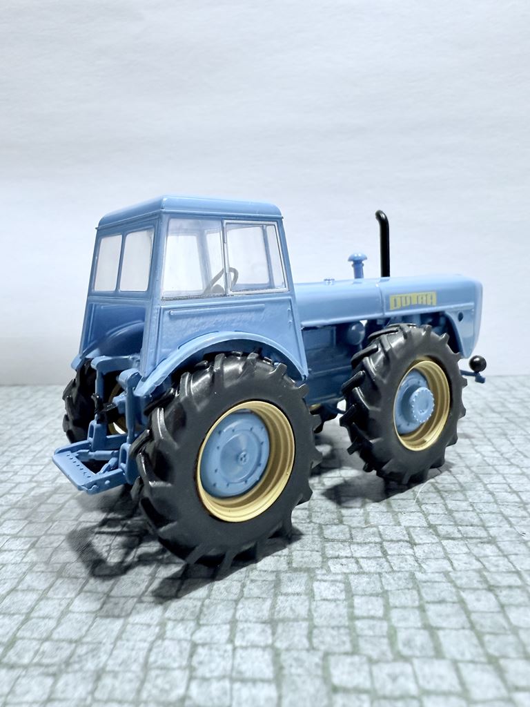 RYS HISTORYCZNY  : Dutra D4K to ciągnik z napędem na wszystkie koła pochodzący z węgierskiej fabryki ciągników „Red Star”. D4K był następcą ciągnika UE-28 z napędem na wszystkie koła i był produkowany w dwóch wersjach, D4K i D4K B. Dutra 1000, zbudowana jako następca D4K B, nie była używana w NRD. Otrzymał również silnik Csepel 613 i nie wprowadzono żadnych zmian w skrzyni biegów. Chociaż Dutra 1000 była produkowana od 1970 do 1975 roku, nie otrzymała redukcji biegów stosowanej w Steyer Dutra, dzięki czemu w grupach szosowych i terenowych dostępne są tylko 3 biegi każdy.