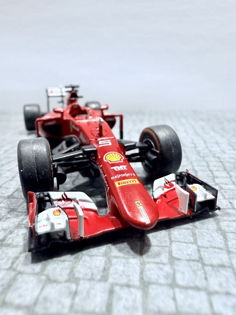 RYS HISTORYCZNY : Ferrari SF15-T to samochód wyścigowy Formuły 1, który Ferrari używało do rywalizacji w sezonie 2015 Formuły 1. Podwozie zostało zaprojektowane przez Jamesa Allisona, Simone Restę i Dirka de Beera, a Mattia Binotto kierował projektem układu napędowego. Za jego kierownicą zasiedli Sebastian Vettel i Kimi Räikkönen. SF15-T został wprowadzony na rynek 30 stycznia 2015 roku. Zespół oddał hołd Jules’owi Bianchiemu podczas Grand Prix Węgier, umieszczając na zagłówku napis „Jules nei nostri cuori” („Jules w naszych sercach”). Podczas Grand Prix Belgii Ferrari świętowało swoje 900. Grand Prix, a ich samochody nosiły logo upamiętniające to osiągnięcie na górnej przedniej części stożka nosowego. 24 grudnia 2014 roku zespół ujawnił, że bolid przeszedł testy zderzeniowe. Bolid został zaprezentowany 30 stycznia 2015 roku. Prezentacja odbyła się w Maranello. SF15-T jest sześćdziesiątym pierwszym samochodem zbudowanym przez Ferrari specjalnie do udziału w Mistrzostwach Świata Formuły 1.