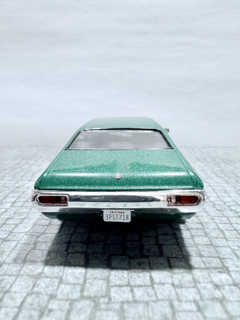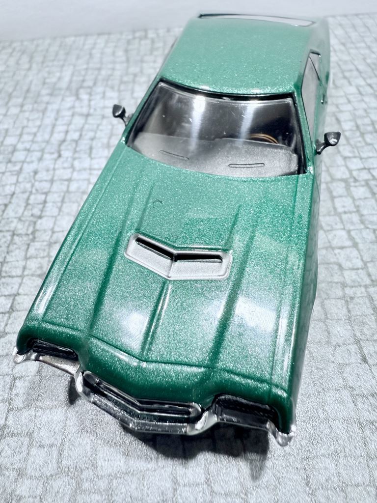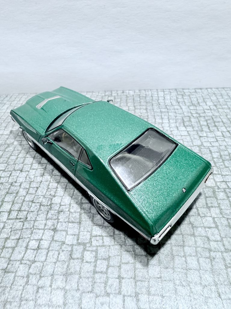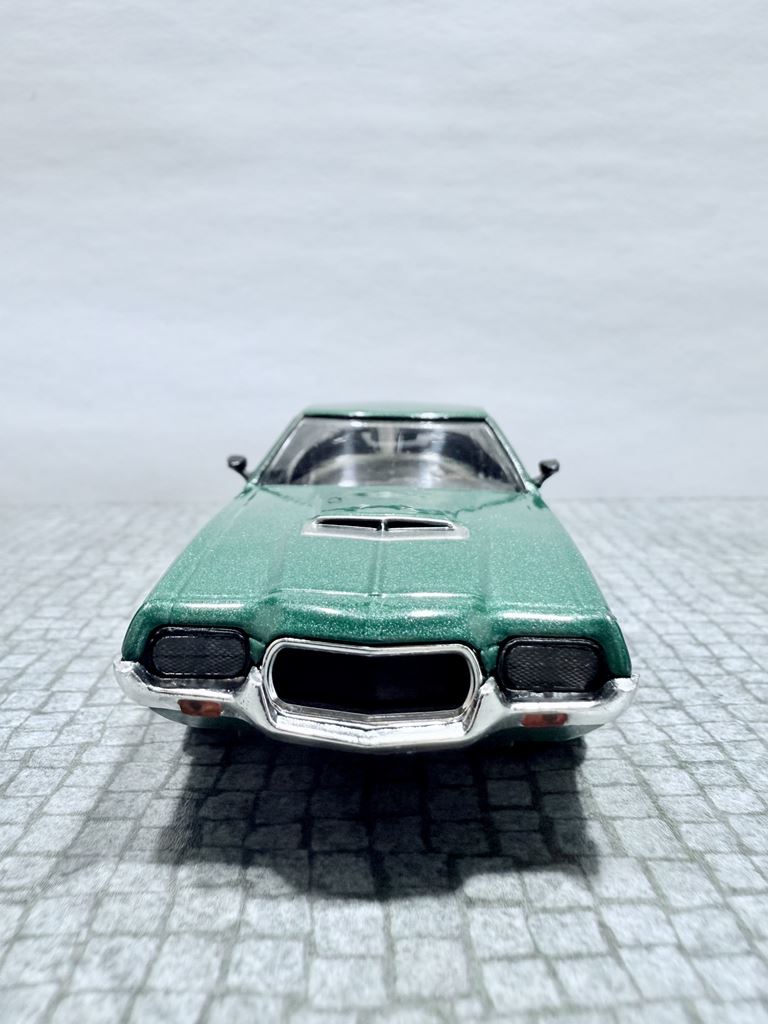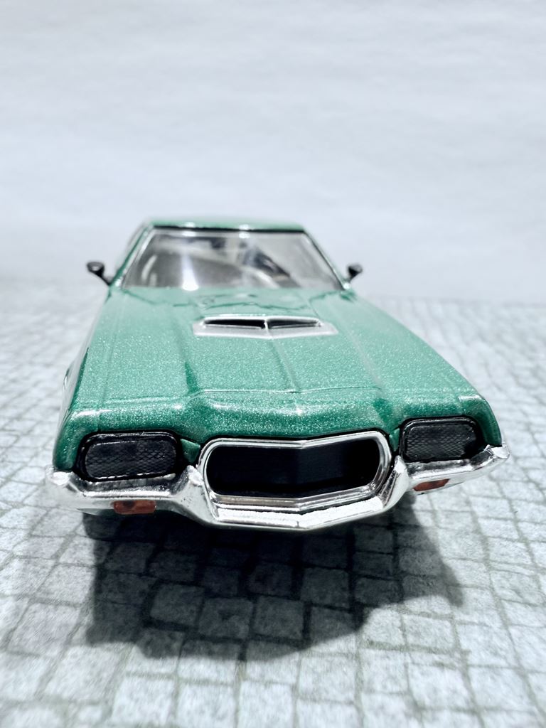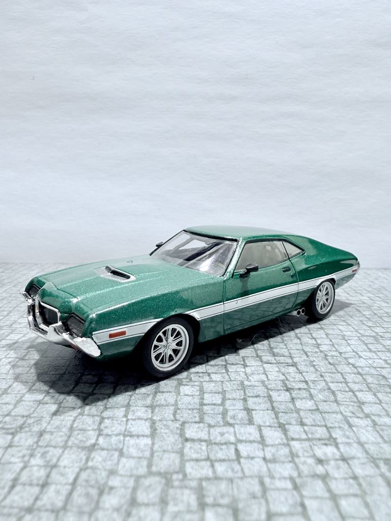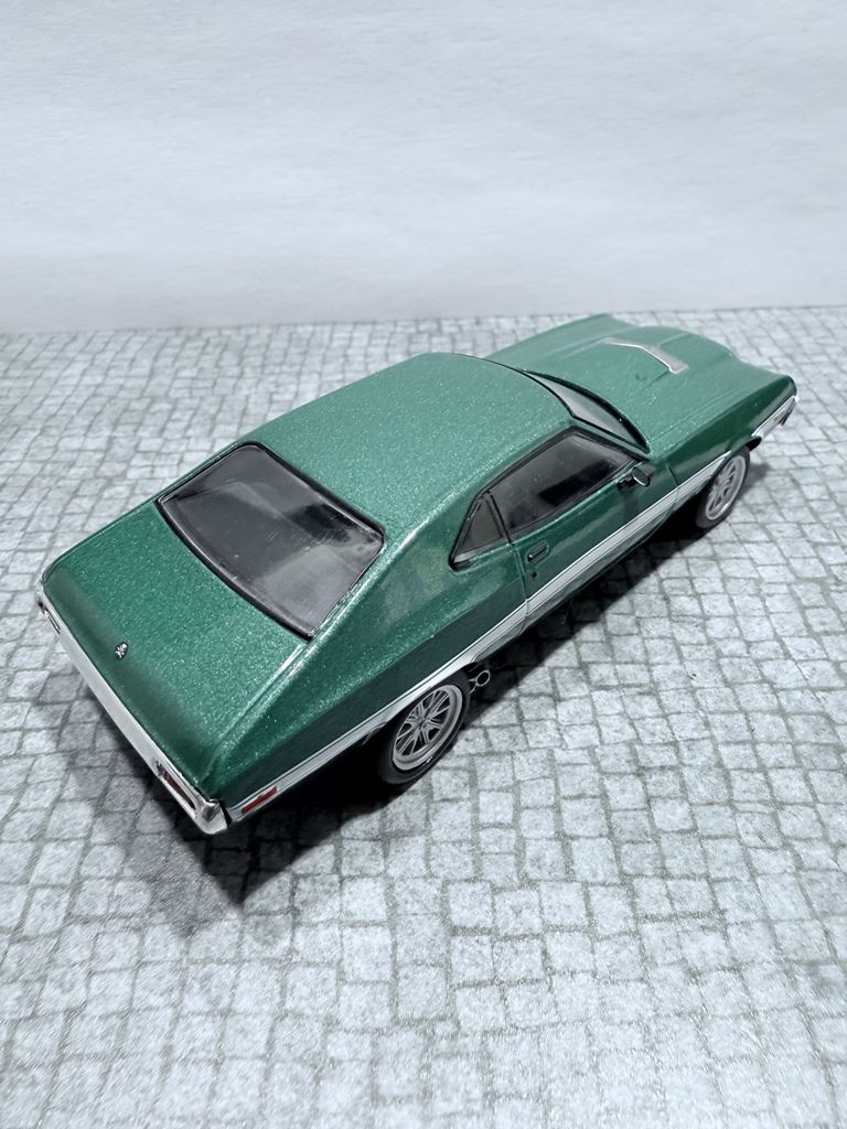 RYS HISTORYCZNY : Ford Torino – samochód osobowy klasy wyższej produkowany pod amerykańską marką Ford w latach 1968–1976. Ford Torino I został zaprezentowany po raz pierwszy w 1968 roku. Nazwa modelu, „Torino,” to po włosku Turyn, najważniejszy ośrodek przemysłu motoryzacyjnego tego kraju będący odpowiednikiem amerykańskiego Detroit. Nazwa ta była także jedną z kilku zaproponowanych dla Forda Mustanga podczas pierwszych faz rozwoju. Ford Torino II został zaprezentowany po raz pierwszy w 1970 roku. Premiera drugiej generacji Forda Torino przyniosła obszerną restylizację wyglądu tego modelu. Zmienił się kształt nadwozia, który zyskał bardziej obłe kształty z dużą liczbą przetłoczeń i strzelistych kształtów. Wyraźnie zaznaczone zostały nadkola, a innym charakterystycznym elementem stała się podłużna maska i nisko poprowadzona linia dachu. Ford Torino III został zaprezentowany po raz pierwszy w 1972 roku. W 1973 sprzedano 496 581 sztuk Torino. Samochód sprzedawał się znacznie lepiej od głównego konkurenta, Chevroleta Chevelle, o ponad 168 000 sztuk. Rok 1974 był udany dla Forda, model Torino nadal był popularny. Wyprodukowano 426 086 sztuk pojazdu, wliczając w to 96 604 Gran Torino Elite.