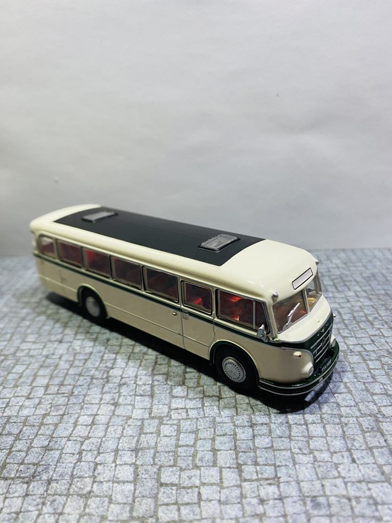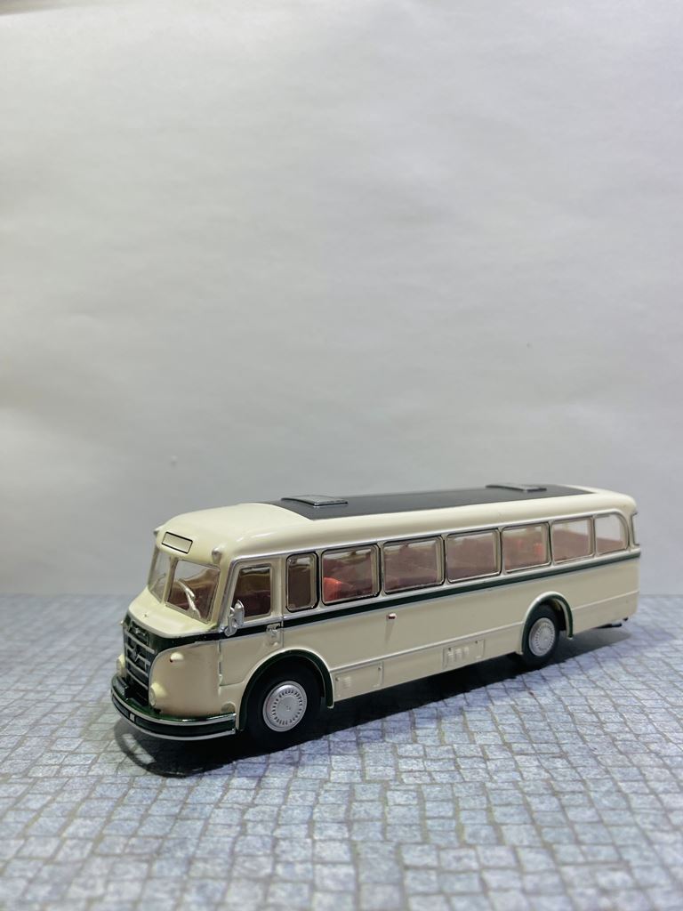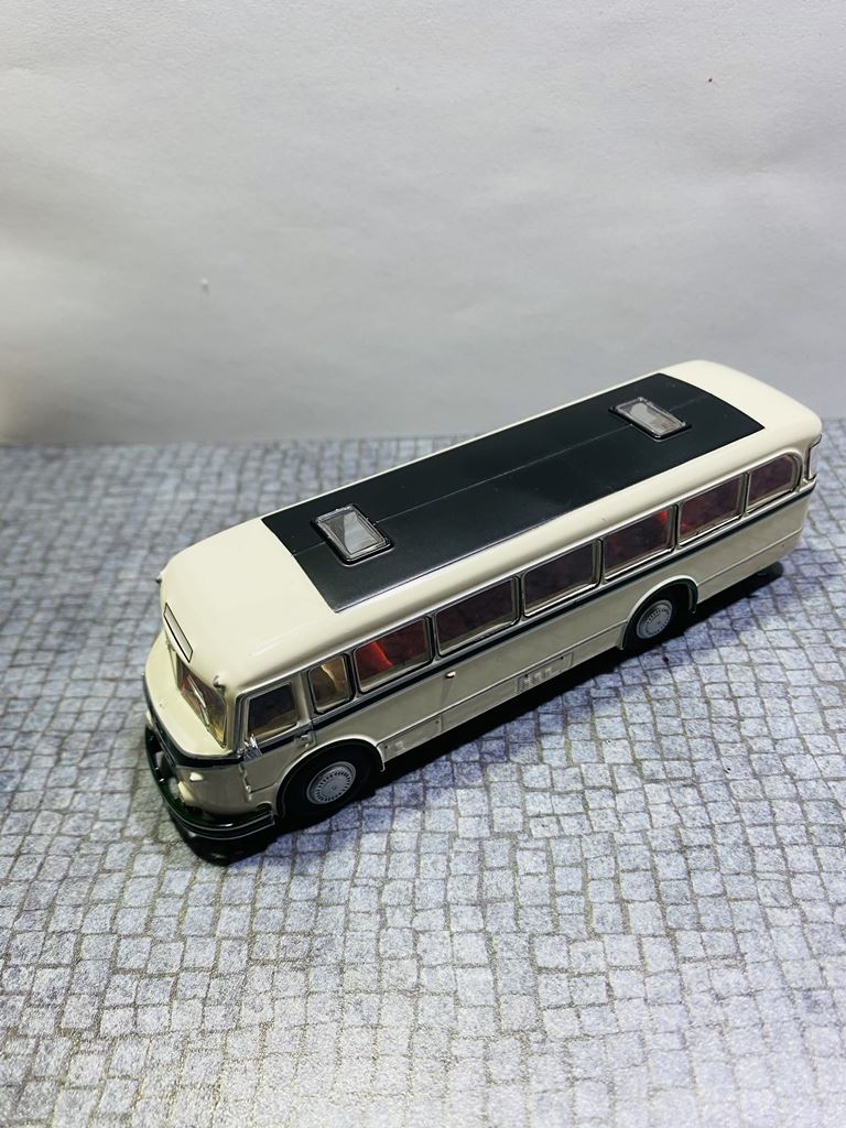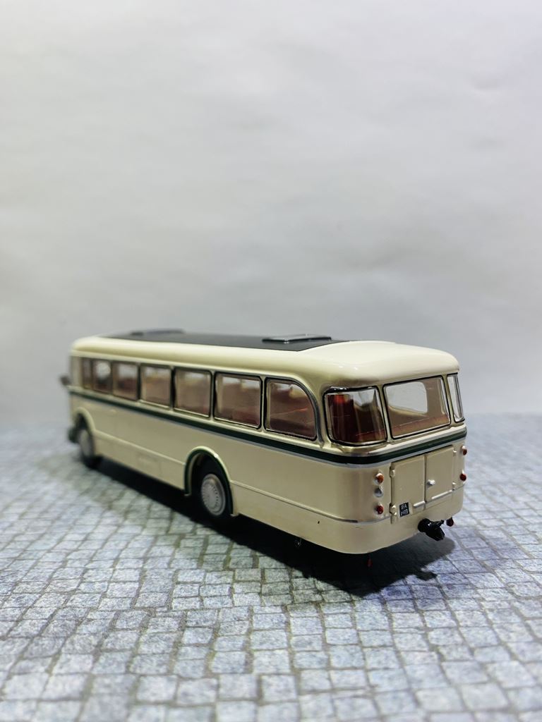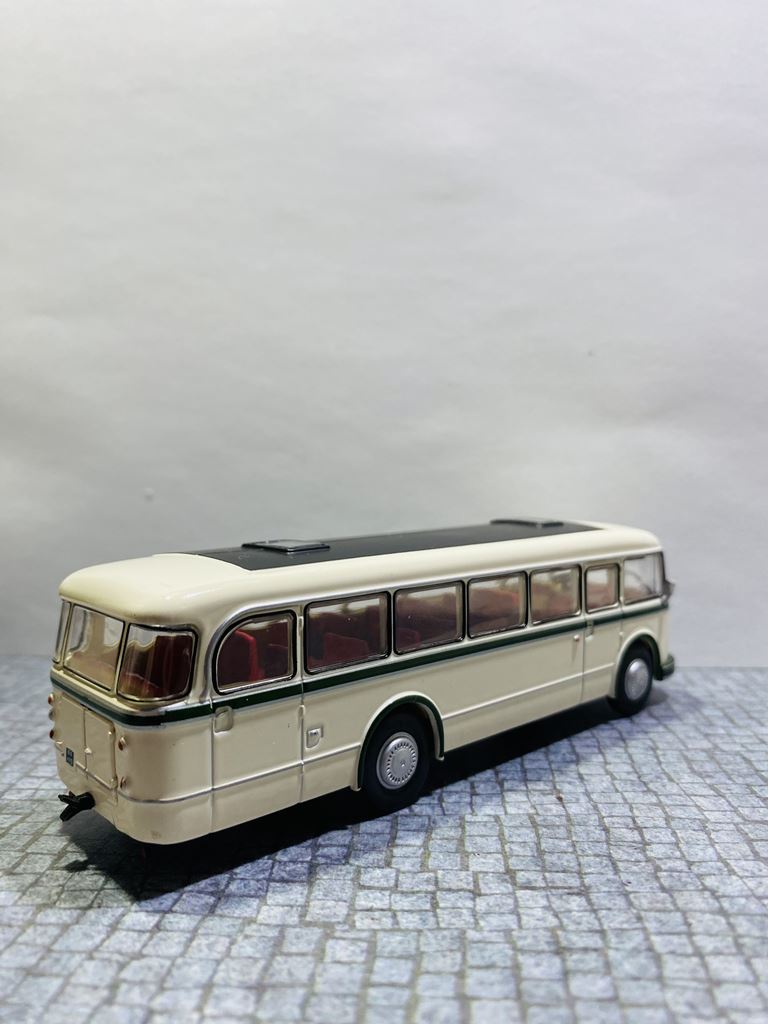Podstawą rozwoju autobusu była produkcja zunifikowanych ciężarówek typu H6, których jednostka napędowa i części podwozia nadawały się również do budowy autobusów. Autobusy zostały oznaczone jako H6B ze względu na identyczną bazę konstrukcyjną z wagonem H6. H oznaczało silnik Horch, numer 6 ładowność samochodu w tonach, a B niemieckie słowo oznaczające autobus. Autobusy IFA H6B wyróżniały się dużą niezawodnością i aż do lat siedemdziesiątych XX wieku z natury należały do krajobrazu NRD. IFA H6B był jednym z najbardziej typowych autobusów wschodnioniemieckich dróg drugiej połowy XX wieku. Był to pojazd dwuosiowy z półsamonośnym nadwoziem typu trambus. Sztywne osie były zawieszone na resorach piórowych. Układ kierowniczy był bez zasilania. Wsiadanie do pojazdu odbywało się przez jedne lub dwoje drzwi, w zależności od konstrukcji. W wersji H6B/S drzwi były sterowane pneumatycznie, w wersji H6B/L drzwi. Dodatkowo kierowca miał własne drzwi w lewej ścianie bocznej, które prowadziły bezpośrednio do jego stanowiska, ponieważ silnik znajdował się nad przednią osią i sięgał daleko w głąb wnętrza pojazdu. W dolnej części nadwozia między przednią i tylną osią znajdował się bagażnik. Wewnątrz autobusu znajdowało się sześć rzędów siedzeń dla 32 (34) pasażerów. Miejska wersja H6B/S (wersja berlińska) miała pojemność 26 pasażerów siedzących i 34 stojących. Standardowe wyposażenie wersji H6B/L obejmowało fotele ze sztucznej skóry z uchwytami bezpieczeństwa. Wnętrze wyłożono drewnem, a wentylację zapewniały dwie klapy dachowe. W przypadku dłuższych dalekich podróży w oknach były zasłony. Obie wersje H6B/S i H6B/L przystosowano do ciągnięcia przyczep autobusowych (HW80 i W701). Moc była przenoszona z silnika za pośrednictwem jednotarczowego suchego sprzęgła, pięciobiegowej manualnej skrzyni biegów i przegubu na tylną oś. Osie zostały wyposażone w koła tarczowe wykonane z blachy stalowej. Przestrzeń dla orientacji linii na przedniej powierzchni miała kształt kanciasty. Prezentowany model to wersja H6B/L – autobus międzymiastowy („L” Linienbus) – z przednimi i tylnymi drzwiami zatrzaskowymi. Do czasu spopularyzowania Ikarusów, był to jeden z podstawowych środków transportu na terenie NRD. Autobus produkowało się zarówno w wersjach miejskich, jak i turystycznych, a wiele egzemplarzy doczekało nawet zjednoczenia Niemiec. Po zakończeniu ich aktywnej eksploatacji w regularnej komunikacji, wiele pojazdów zostało przekazanych prywatnym firmom autobusowym lub rolniczym spółdzielniom produkcyjnym, gdzie służyły nawet końca NRD.