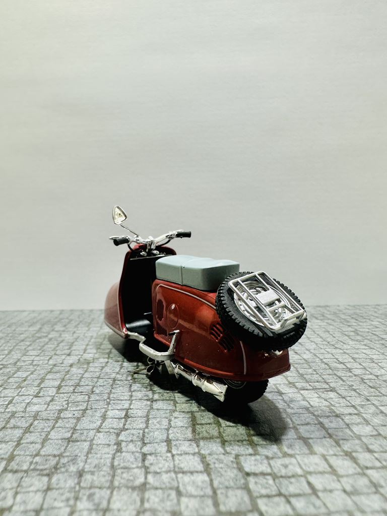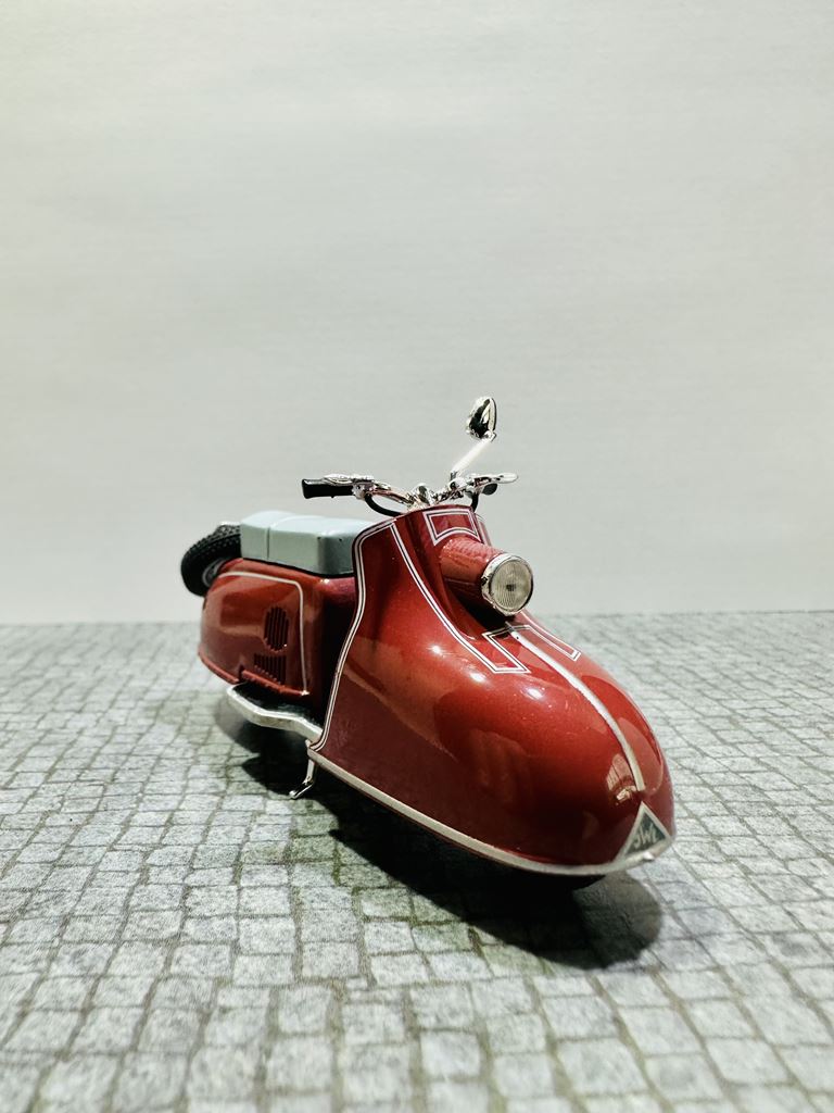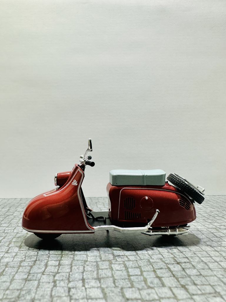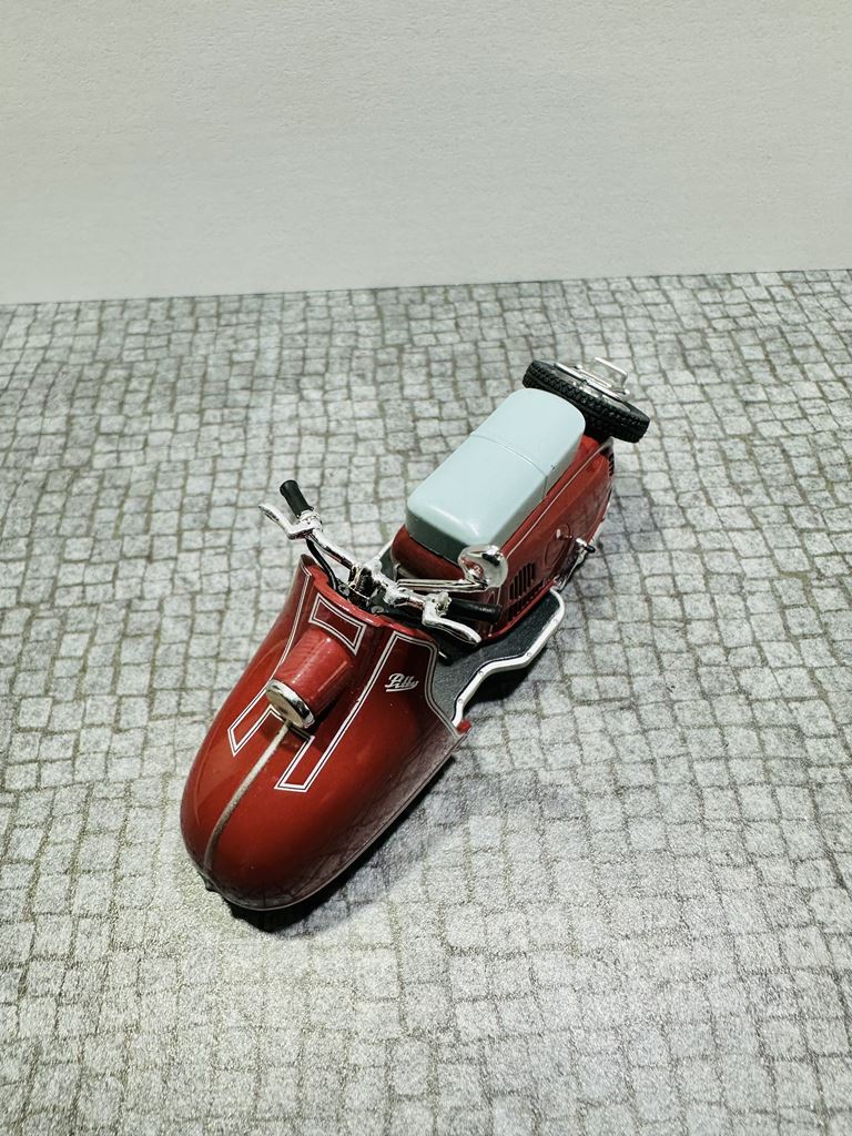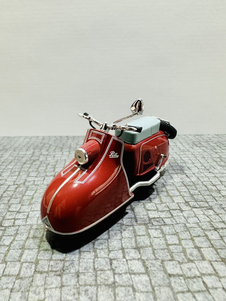 RYS HISTORYCZNY Pitty to model skutera, który został wyprodukowany w NRD. Został zbudowany od lutego 1955 do kwietnia 1956 roku jako pierwszy skuter w VEB Industriewerke Ludwigsfelde. Dwumiejscowy skuter ma chłodzony wentylatorem silnik o pojemności 125 cm³. Prędkość maksymalna wynosi 65 km/h. Jego następcą jest model Wiesela. Na początku 1950 roku nastąpił pierwszy boom na skutery, który rozpoczął się od udanych modeli Piaggio. Po tym, jak niektórzy producenci w Republice Federalnej Niemiec dołączyli do tego trendu, popyt na skuter stał się głośny również w NRD. Jednak w gospodarce sterowanej centralnie początkowo trudno było wybrać odpowiedni projekt do produkcji seryjnej. Już w 1950 roku mistrz rzemieślniczy August Falz był zaangażowany w budowę skuterów testowych, które nazwał Falzo. Jego skutery miały ciekawe detale konstrukcyjne, takie jak dźwignia ręczna do uruchamiania silnika zamiast kickstartera. Jeden z jego typów Falzo został zaprezentowany na targach w Lipsku i prawdopodobnie był również produkowany na mniejszą skalę. Nie wiadomo, dlaczego nie doszło do produkcji na dużą skalę. Preferowano projektanta Maxa Freihoffa, który był zwolennikiem kierownictwa państwa jako założyciel pierwszego PGH handlu metalami. Jednak planowana seryjna produkcja jego skutera Hexe nie powiodła się z powodu wad koncepcyjnych, takich jak przegubowe zawieszenie, konstrukcja, która była wygodna, ale pozwalała skuterowi wyginać się w środku pod obciążeniem. W rezultacie zebrano grupę inżynierów i wykwalifikowanych pracowników, aby zaprezentować pojazd testowy w ciągu 81 dni. Rezultatem był Pitty pod koniec 1953 roku. Produkcja seryjna zapowiedziana na lato 1954 roku została opóźniona do lutego 1955 roku. W międzyczasie August Falz budował już nowoczesny skuter Sibylle, ale nawet ten zaawansowany projekt nie został przeniesiony do produkcji seryjnej. Pitty został po raz pierwszy pokazany na targach w Lipsku wiosną 1955 roku.