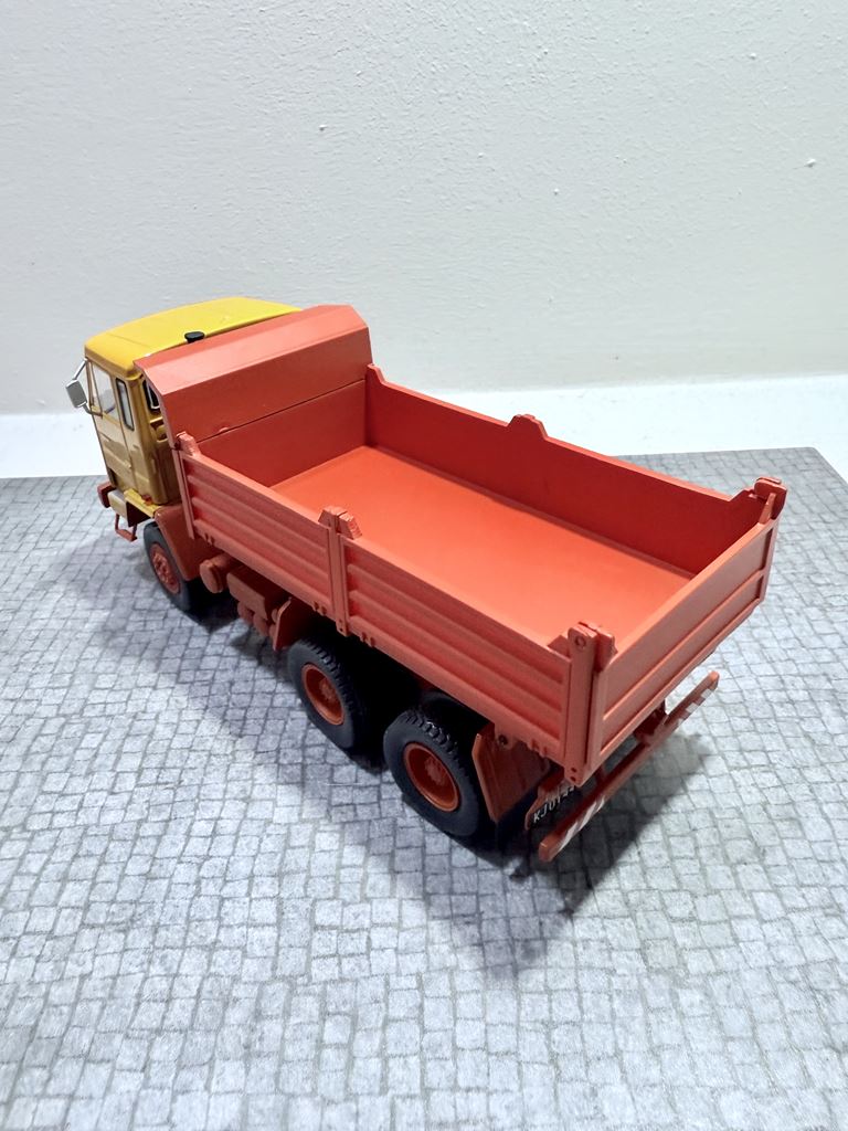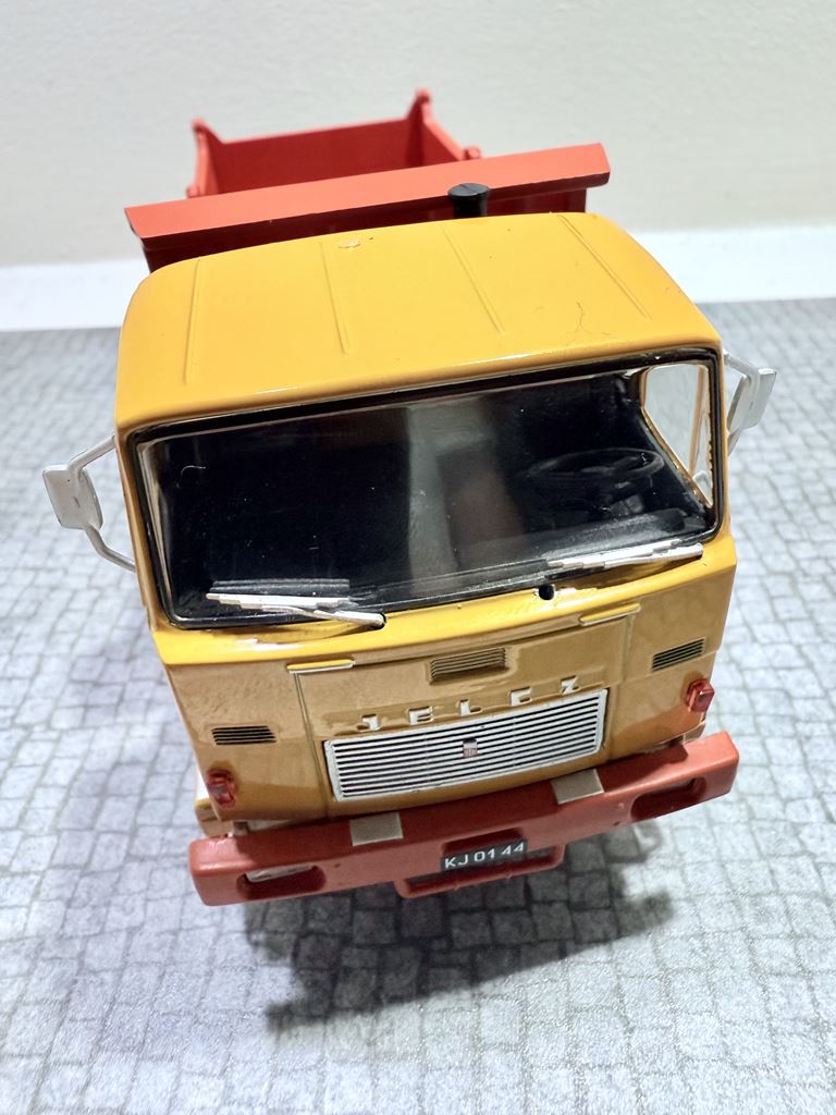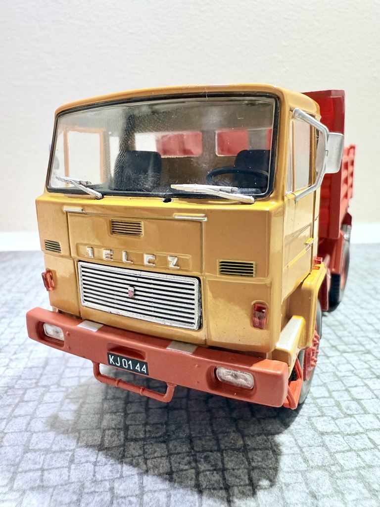 RYS HISTORYCZNY : Jelcz 640 – polski samochód ciężarowy dużej ładowności produkowany seriami od 1973 roku do początku lat 80. XX wieku przez Jelczańskie Zakłady Samochodowe w Jelczu k. Oławy (obecnie Jelczu-Laskowicach). Początkowo skrzynie ładunkowe wywrotek były importowane z Austrii (produkcji IFE – 20t), po czym wprowadzono polską konstrukcję produkcji SHL w Kielcach (w latach 1974–1995: Fabryka Samochodów Specjalizowanych Polmo-SHL, specjalizująca się zabudową nadwozi na podwozia dostarczane z JZS i FSC w Starachowicach). W grudniu 1973 roku, w Jelczańskich Zakładach Samochodowych (JZS; obecnie Jelcz), przekazano do eksploatacji pierwszą serię 50  18-tonowych samowyładowczych Jelczy 640W (także 640 W, W-640, W640JS, 3W640-825), największej wywrotki zbudowanej w Polsce (2016). Była to odpowiedź JZS na apel ówczesnego rządu o dostosowanie profilu produkcyjnego do aktualnych potrzeb gospodarczych, co wynikało z faktu, iż Polska w początku lat 70. zamieniła się w wielki plac budowy i rozpoczęto szereg dużych inwestycji, z budową Huty Katowice na czele. Potrzebowano dużej ilości ciężkiego sprzętu w całym kraju (wywrotki, betonomieszarki, koparki), na co odpowiedziało Zjednoczenie Przemysłu Motoryzacyjnego „Polmo”. Warunkiem współpracy postawionym przez Austriaków była jednak kompensata i dostawy z Polski, najlepiej z przemysłu motoryzacyjnego. Wobec tego JZS podjął decyzję o współpracy z firmą Steyr. Po wygraniu przez Steyr’a przetargu na dostawy ciężarówek do Huty Katowice, dopięto umową (podpisaną we wrześniu 1972 roku) sprawę współpracy i licencji, a ta zaczęła się od produkcji przedniej osi oraz montażu wywrotek na austriackich podwoziach. Otrzymywały one polskie silniki, skrzynie biegów, kabiny i skrzynie ładunkowe. Z czasem polskie zakłady podjęły także produkcję hydrauliki siłowej. Pierwsze pojazdy (wywrotki) trafiły do użytkowników 14 grudnia 1973 roku. Do 1981 roku w JZS powstało około 3000 kabin typu 136 w większości do zabudowy na podwozia wywrotek oraz w mniejszej ilości dla leśnictwa, stąd można szacunkowo określić ilość wyprodukowanych ciężarówek Jelcz 640 na około 3000 sztuk. Na Steyra zabrakło pieniędzy (dewiz), choć Polska skorzystała w całości z austriackiego kredytu celowego w wysokości 4,3 mld szylingów. W listopadzie 1980 roku Rada Ministrów uchwałą 133/80 wstrzymała wdrażanie kontraktu ze Steyrem. Pozostały po niej nieliczne prototypy najcięższych modeli, do których Jelczańskie Zakłady Samochodowe powróciły w drugiej połowie lat 80, rozwijając serię 642.