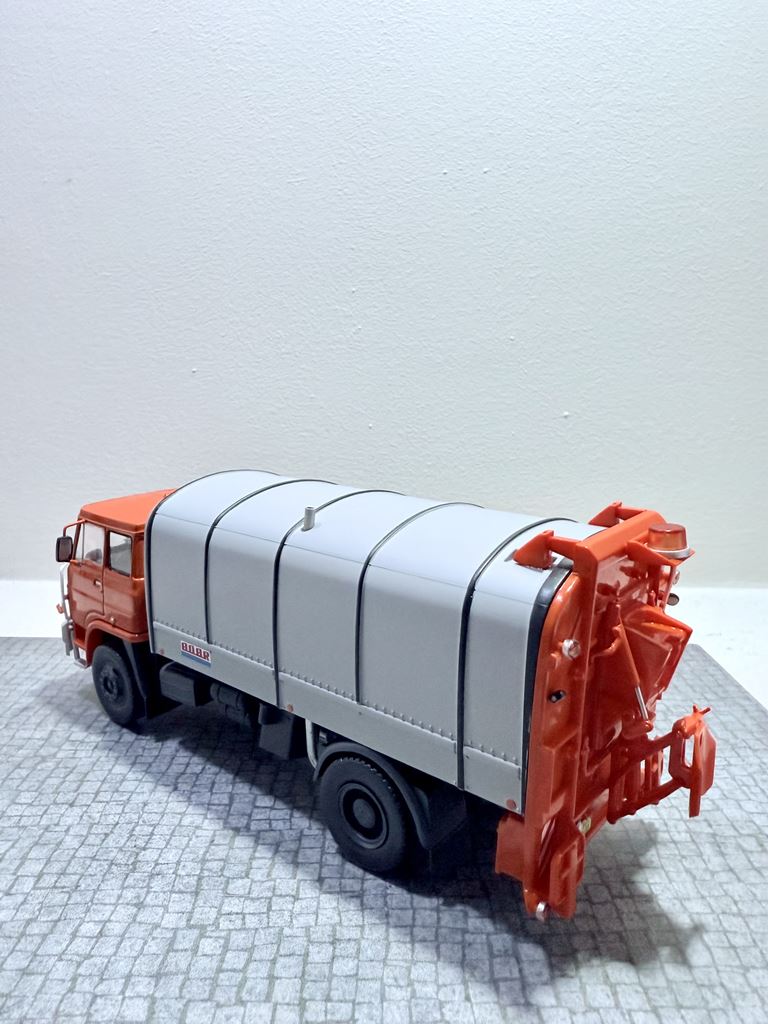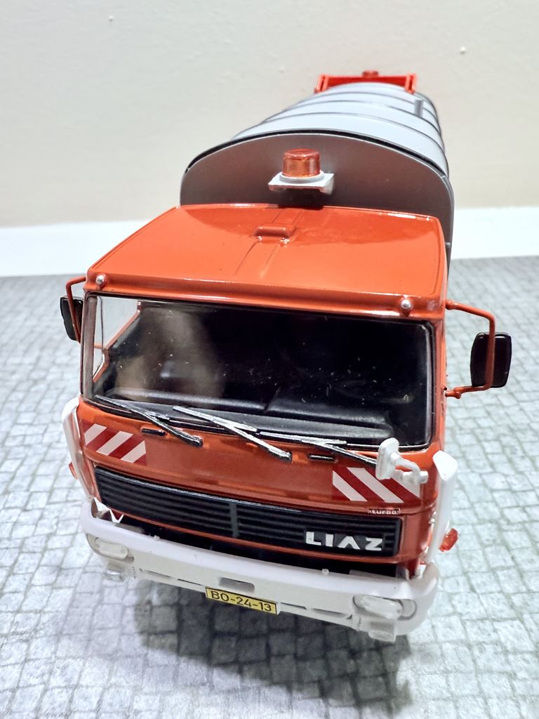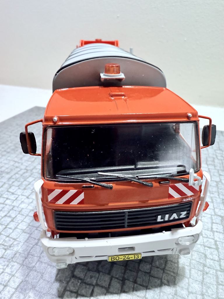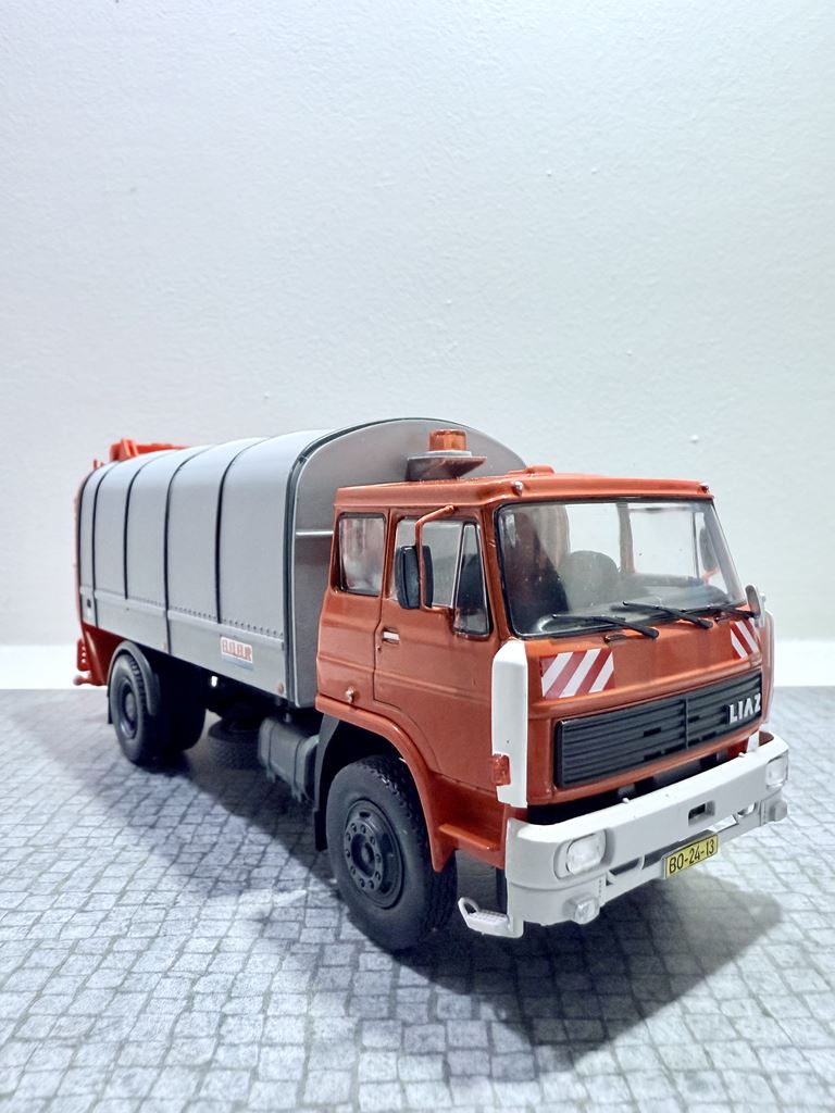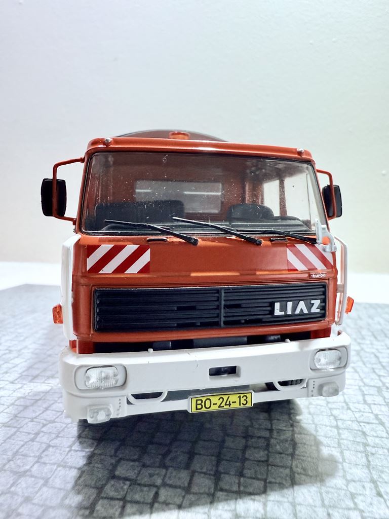 RYS HISTORYCZNY : LIAZ 100 to seria samochodów ciężarowych produkowanych przez Liberecką Fabrykę Samochodów w latach 1974 – 1994. Poprzednikiem była seria modeli Škoda 706 RT i MT, następca serii LIAZ 200 i LIAZ 300. Łącznie powstało kilkadziesiąt tysięcy sztuk; W Mnichovie Hradiště wyprodukowano 54 507 pojazdów, gdzie do 2003 roku zmontowano ponad 80% wszystkich pojazdów i podwozi firmy LIAZ. Od początku lat sześćdziesiątych XX wieku LIAZ rozwija nową serię typoszeregów (NTŘ), w tym czasie nawet w ramach czesko-polskiej współpracy w ramach grupy producentów samochodów ciężarowych o ładowności od 3 do 7 ton – dla Czechosłowacji konstruktorów LIAZ i Praga/Avia, dla Polski konstruktorów producentów samochodów Żubr i Jelcz. Ta wspólna grupa konstrukcyjna zakończyła swoją działalność po około roku prac, w wyniku czego każdy kraj będzie produkował pojazdy według swoich projektów, jednak LIAZ dostarczy silniki, ramy i osie serii 706 RTO do produkcji autobusów Jelcz. Czechosłowacki NTR miał się odbyć tylko we współpracy producentów samochodów LIAZ i Praga/Avia. W porównaniu do dotychczasowej Škody 706 RT i Pragi V3S/S5T, nowy samochód miał mieć zupełnie nowy silnik, skrzynię biegów, kabinę i osie, spełniając wymagania klientów i czasu. W tym czasie LIAZ opracował już nowe silniki serii M63x (dla ciężarówek MŠ 63x do pochylenia pod kabiną, dla autobusów ML 63x do montażu poziomego w podwoziu), przygotowano również nowe osie z redukcjami kół, a obaj producenci samochodów wspólnie opracowali nową kabinę w trzech wersjach rozmiarowych. Ciągłe problemy gospodarki socjalistycznej z inwestycjami w poszczególnych dostawców doprowadziły do tego, że Avia w Letňanach wycofała się z projektu w 1967 roku i zakupiła od Saviem licencję na produkcję kompletnych modeli o ładowności 1,5 (Avia A15) i 3 ton (Avia A30), produkcja modelu Praga S5T została zakończona w 1972 roku bez krajowej wymiany i produkcja modelu Praga V3S była kontynuowana z niewielkimi modernizacjami w zakładzie produkcyjnym Praga Čáslav. Dla LIAZ oznaczało to, że nie otrzymała mocy produkcyjnych do produkcji nowych nowoczesnych kabin, a dostarczone, ale nie uruchomione technologie produkcji pozostawały w magazynach przez kilka lat. W związku z tym projektanci umieścili nowe jednostki (osie, skrzynie biegów i silniki) na oryginalnej ramie RT ze zmodyfikowaną kabiną RT, która w 1969 roku dała początek nowej serii Škoda 706 MT (lub LIAZ MT), później ulepszonej do typów MT3 i MT4. Ten tymczasowy typ pośredni, planowany na kilkadziesiąt miesięcy do momentu uruchomienia nowej linii kabinowej, został ostatecznie utrzymany w produkcji do 1991 roku. Dopiero po 1972 roku w fabryce LIAZ Holýšov zakończono produkcję autobusów i nadwozi zapasowych Škoda 706 RTO – dopiero po gruntownej przebudowie tego zakładu udało się w końcu zainstalować i uruchomić linie prasowania i zgrzewania nowych kabin LIAZ 100 z 1974 roku. Po raz kolejny uwidoczniła się niezdolność socjalistycznego zarządzania inwestycjami, ponieważ zakład produkcyjny nie dysponował odpowiednią lakiernią, a spawane kabiny bez obróbki powierzchniowej były następnie transportowane przez pół kraju do lakierni Tatra Kopřivnice w celu kataforezy, a dopiero stamtąd na linie produkcyjne LIAZ w Mnichovo Hradiště i Přerovie w celu końcowego malowania, wyposażenia i montażu. Mimo nowoczesnego wyglądu kabiny, użytkownicy musieli pogodzić się z tym, że kabina jest nieuchylna i umożliwia dostęp do silnika tylko z wnętrza kabiny po otwarciu kanapy, pokrywy silnika i podłogi pasażera. Produkcja serii 100/110/150 została zakończona po 20 latach produkcji w 1994 roku, kiedy to została zastąpiona nową serią LIAZ 300 z silnikami pionowymi, ale zgodnie z życzeniem klientów sporadyczne zamówienia tej starej serii były realizowane do końca istnienia firmy.