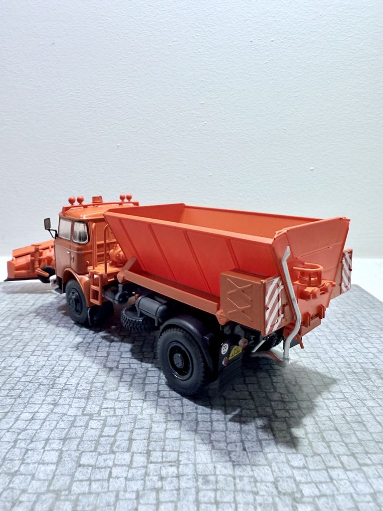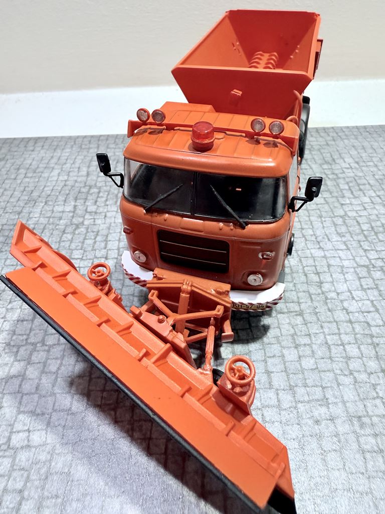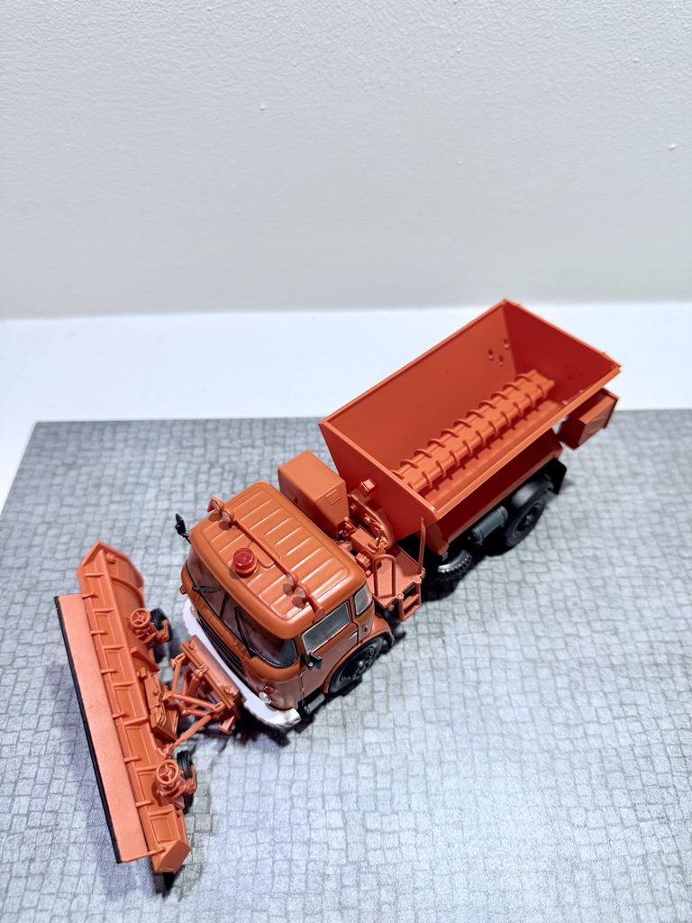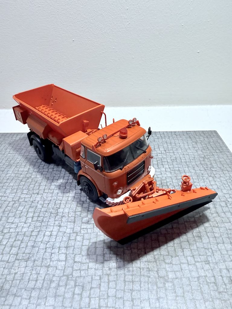 RYS HISTORYCZNY : Škoda 706 RT – samochód ciężarowy produkowany przez czechosłowackiego producenta samochodów użytkowych LIAZ. Powstał na bazie ciężarówki Škoda 706 R. Pojazd został sprowadzony do NRD w 1957 roku i zdominował tamtejszy krajobraz uliczny w latach 1960. po zaprzestaniu produkcji ciężkich samochodów ciężarowych w NRD. Począwszy od 1960 roku, China National Heavy Duty Truck Group (Sinotruk) wyprodukowała pierwszą w Chinach ciężarówkę o dużej ładowności, Huanghe JN150, która była repliką Škody 706 RT. Škoda 706 RTH to pojazd użytkowy z serii Škoda 706, na którego podwoziu wyprodukowano zabudowę wykorzystywaną do różnych celów. Były to np. pojazdy montażowe dla komunikacji miejskiej, cysterny – tryskacze, cysterny gaśnicze itp. Wyprodukowano ponad 440 000 ciężarówek typu 706 RT. Kolejna modernizacja 706 miała miejsce w 1966 roku wraz z wprowadzeniem na rynek serii MT, wyposażonej w nowe sześciocylindrowe silniki Škoda-LIAZ serii M o większej mocy. Na pierwszy rzut oka samochody MT wyróżniały się bardziej stonowaną osłoną chłodnicy.