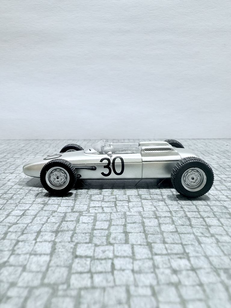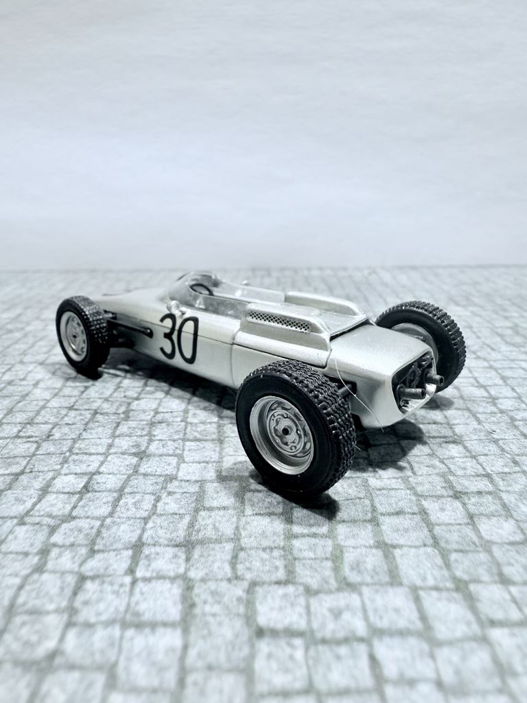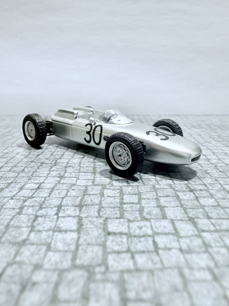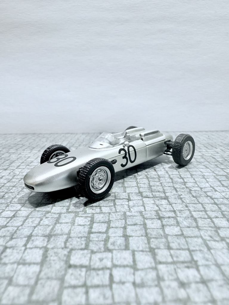 RYS HISTORYCZNY  : Porsche 804 – samochód Formuły 1, zaprojektowany przez Helmuta Botta i biorący udział w zawodach Formuły 1 w sezonie 1962. Zbudowano cztery egzemplarze 804. Prototyp silnika został po raz pierwszy uruchomiony na stanowisku testowym 12 grudnia 1960 roku. Ten pierwszy 753 wytwarzał tylko 105 KM (78,3 kW) (niektóre źródła podają 120 KM (89,5 kW)).