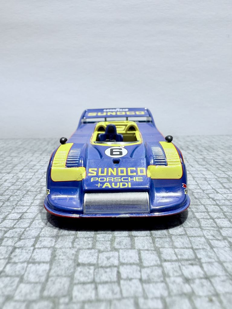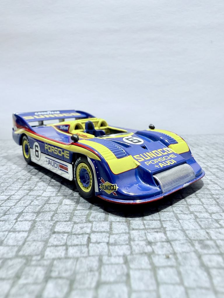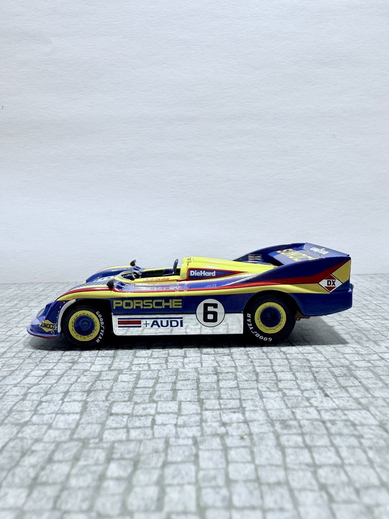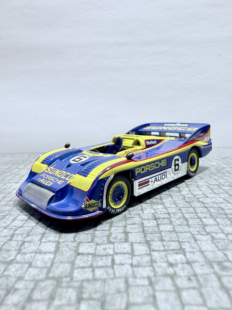 RYS HISTORYCZNY : Porsche 917 to sportowy prototyp samochodu wyścigowego opracowany przez niemieckiego producenta Porsche w celu wykorzystania przepisów dotyczących budowy 5-litrowych samochodów sportowych. Napędzany silnikiem typu 912 z silnikiem 12-cylindrowym, który był stopniowo zwiększany z 4,5 do 5,0 litrów, 917 został wprowadzony na rynek w 1969 roku i początkowo okazał się nieporęczny na torze wyścigowym, ale ciągły rozwój poprawił właściwości jezdne i zdominował wyścigi samochodów sportowych w 1970 i 1971 roku. W 1970 r. zapewnił Porsche pierwsze zwycięstwo w klasyfikacji generalnej 24-godzinnego wyścigu Le Mans, co powtórzyło w 1971 r. To przede wszystkim przyczynił się do zwycięstwa Porsche w Międzynarodowych Mistrzostwach Markowych w 1970 i 1971 roku. Porsche opracowało model 917 z myślą o wyścigach Can-Am, czego kulminacją było 917/30 z podwójnym turbodoładowaniem, które jeszcze bardziej zdominowało tę rolę. Kierowcy Porsche wygrali mistrzostwa Can-Am w 1972 i 1973 roku. W latach 1969-1975 917 kierowców wygrywało mistrzostwa Interserie każdego roku. 12 marca 1969 roku na Salonie Samochodowym w Genewie zaprezentowano 917 pomalowany na biało z zielonym nosem i czarnym numerem 917. Krótka literatura na temat samochodu wyszczególniała cenę gotówkową 140 000 marek, około 16 000 funtów według kursów wymiany z epoki, czyli cenę około dziesięciu Porsche 911. Cena ta nie pokrywała kosztów rozwoju. 20 kwietnia szef sportów motorowych Porsche, Ferdinand Piëch, pokazał inspektorom CSI 25 917 zaparkowanych przed fabryką Porsche. Piëch zaoferował nawet możliwość jazdy dowolnym samochodem, ale została odrzucona.