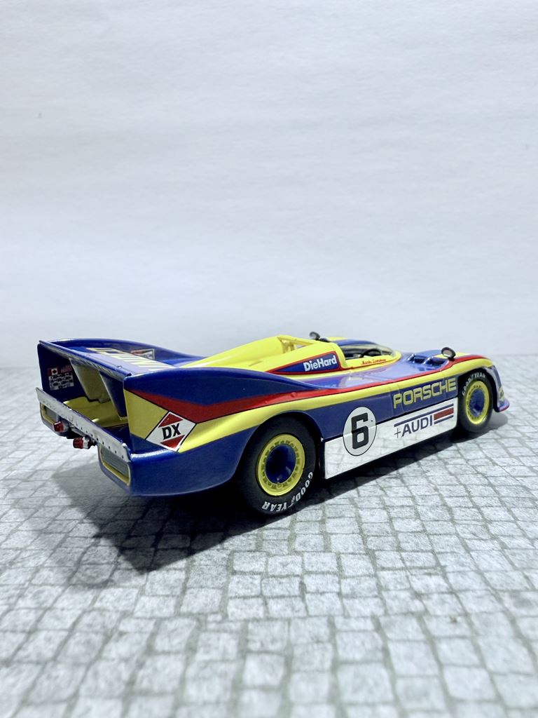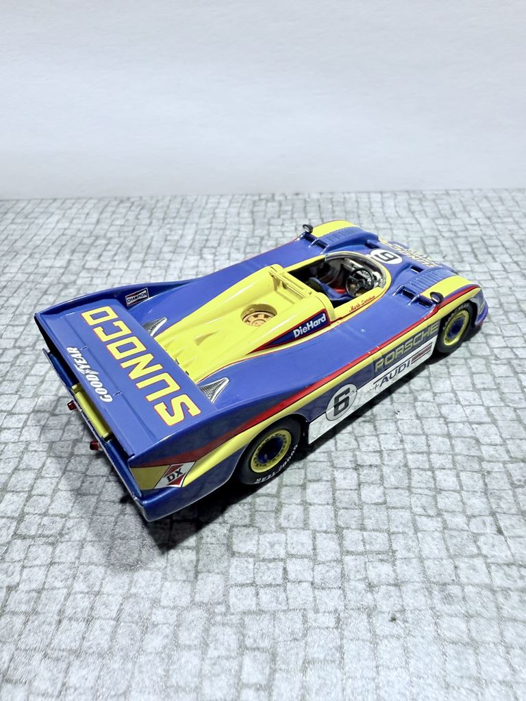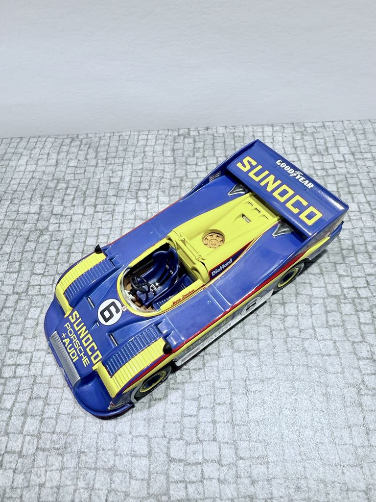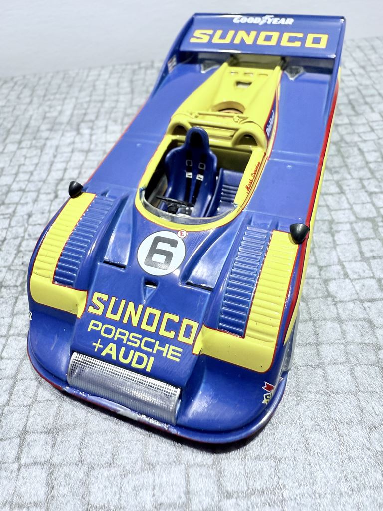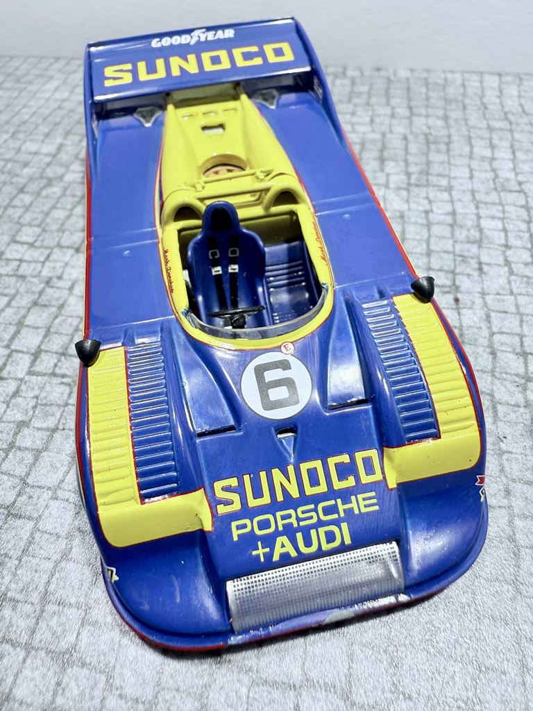 RYS HISTORYCZNY : Porsche 917 to sportowy prototyp samochodu wyścigowego opracowany przez niemieckiego producenta Porsche w celu wykorzystania przepisów dotyczących budowy 5-litrowych samochodów sportowych. Napędzany silnikiem typu 912 z silnikiem 12-cylindrowym, który był stopniowo zwiększany z 4,5 do 5,0 litrów, 917 został wprowadzony na rynek w 1969 roku i początkowo okazał się nieporęczny na torze wyścigowym, ale ciągły rozwój poprawił właściwości jezdne i zdominował wyścigi samochodów sportowych w 1970 i 1971 roku. W 1970 r. zapewnił Porsche pierwsze zwycięstwo w klasyfikacji generalnej 24-godzinnego wyścigu Le Mans, co powtórzyło w 1971 r. To przede wszystkim przyczynił się do zwycięstwa Porsche w Międzynarodowych Mistrzostwach Markowych w 1970 i 1971 roku. Porsche opracowało model 917 z myślą o wyścigach Can-Am, czego kulminacją było 917/30 z podwójnym turbodoładowaniem, które jeszcze bardziej zdominowało tę rolę. Kierowcy Porsche wygrali mistrzostwa Can-Am w 1972 i 1973 roku. W latach 1969-1975 917 kierowców wygrywało mistrzostwa Interserie każdego roku. 12 marca 1969 roku na Salonie Samochodowym w Genewie zaprezentowano 917 pomalowany na biało z zielonym nosem i czarnym numerem 917. Krótka literatura na temat samochodu wyszczególniała cenę gotówkową 140 000 marek, około 16 000 funtów według kursów wymiany z epoki, czyli cenę około dziesięciu Porsche 911. Cena ta nie pokrywała kosztów rozwoju. 20 kwietnia szef sportów motorowych Porsche, Ferdinand Piëch, pokazał inspektorom CSI 25 917 zaparkowanych przed fabryką Porsche. Piëch zaoferował nawet możliwość jazdy dowolnym samochodem, ale została odrzucona.