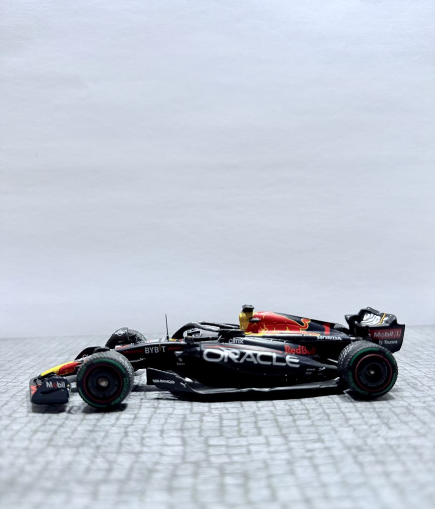 RYS HISTORYCZNY  : Red Bull Racing RB18 to samochód Formuły 1 zaprojektowany i skonstruowany przez Red Bull Racing, który rywalizował w Mistrzostwach Świata Formuły 1 w 2022 roku. RB18 był prowadzony przez broniącego tytułu mistrza świata Maxa Verstappena i Sergio Péreza. Verstappen zapewnił sobie drugie z rzędu mistrzostwo kierowców za kierownicą RB18, a Red Bull zapewnił sobie piąte mistrzostwo konstruktorów, pierwsze od 2013 roku. RB18 jest jednym z najbardziej udanych projektów Adriana Neweya w Formule 1 do tej pory, za swoim następcą, RB19, a także jednym z najbardziej dominujących samochodów Formuły 1, jakie kiedykolwiek zbudowano.