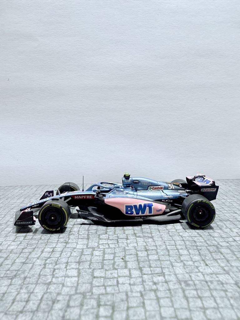 RYS HISTORYCZNY : Alpine A522 to samochód Formuły 1 zaprojektowany i zbudowany przez BWT Alpine F1 Team i startujący w Mistrzostwach Świata Formuły 1 w 2022 roku. Za kierownicą samochodu zasiedli Fernando Alonso i Esteban Ocon. Podwozie jest pierwszym samochodem Alpine objętym regulaminem technicznym z 2022 roku.
