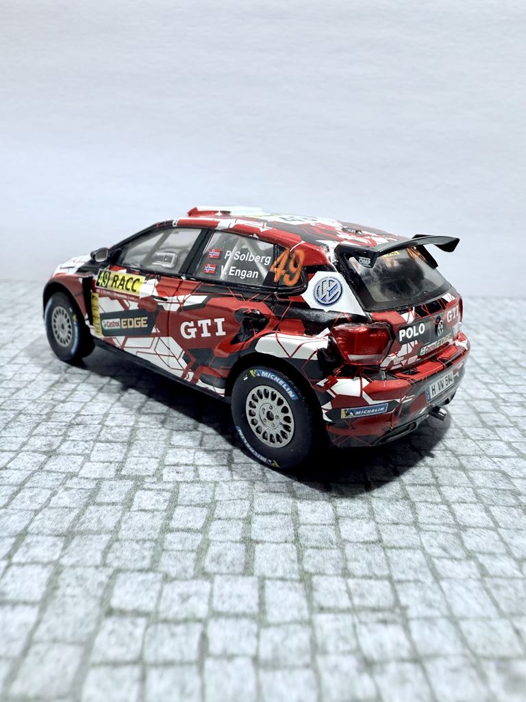 RYS HISTORYCZNY : Volkswagen Polo GTI R5 to samochód rajdowy zbudowany przez Volkswagen Motorsport i oparty na samochodzie drogowym Volkswagen Polo. Jest zbudowany zgodnie z przepisami R5 i jest następcą Volkswagena Polo R WRC. Polo GTI R5 zadebiutowało w Rajdzie Katalonii w 2018 roku, gdzie zasiedli za kierownicą mistrza świata kierowców z 2003 roku Petter Solberg i Eric Camilli. Samochód obecnie bierze udział w Rajdowych Mistrzostwach Świata 2, gdzie zgłaszają się do niego różni korsarze.